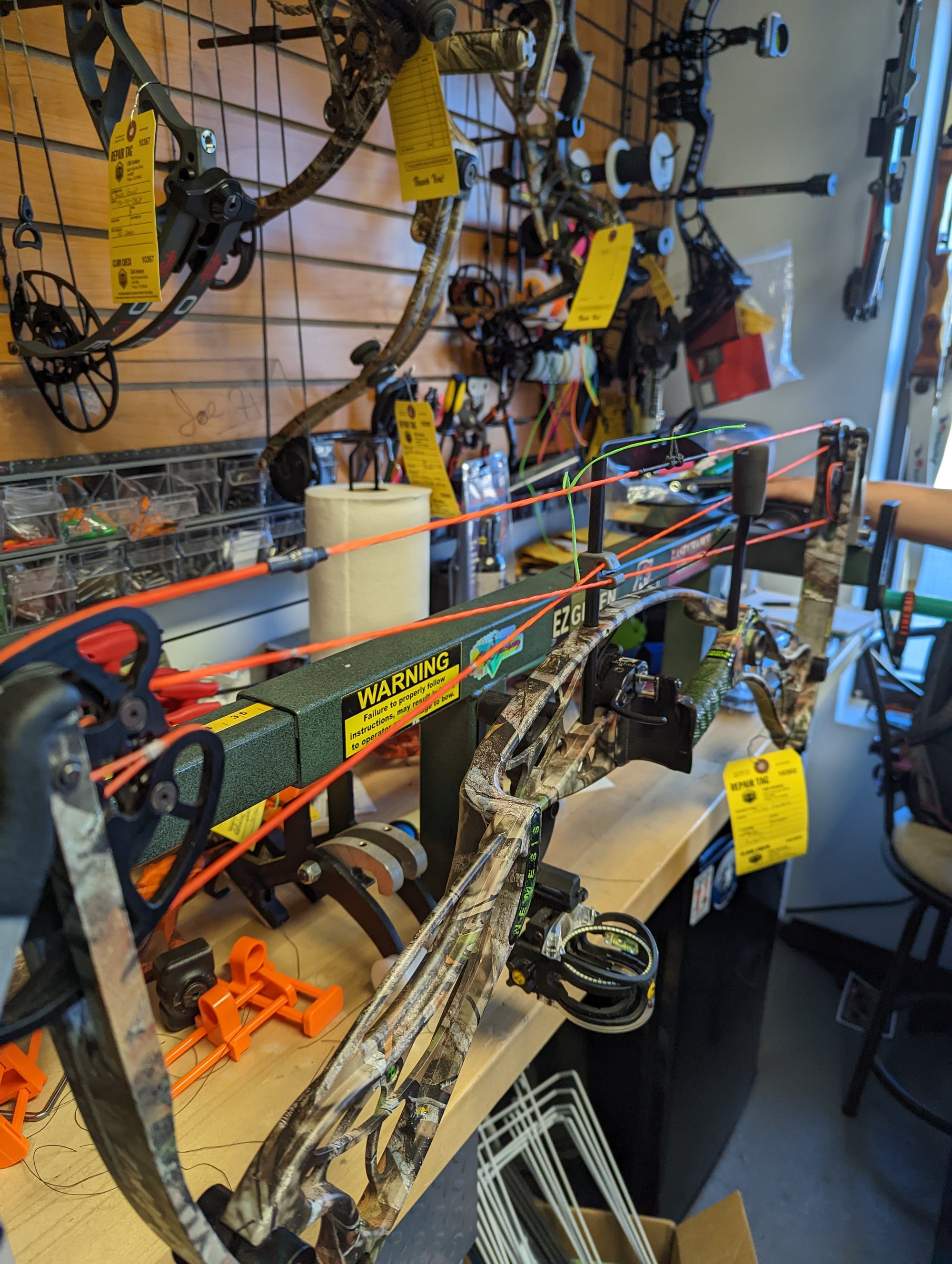 - Safety check, adjust weight, wax string and check nock fitment, level sight, shoot through paper